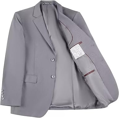 - Classic Design: Two buttons closure and solid color are suitable for formal occasions.The suit jacket has one pocket at chest height and two flap pockets at waist height, convenient to hold small items. You can match with a tie and a white shirt for a formal look. You can also match with a T-shirt for and casual dress.